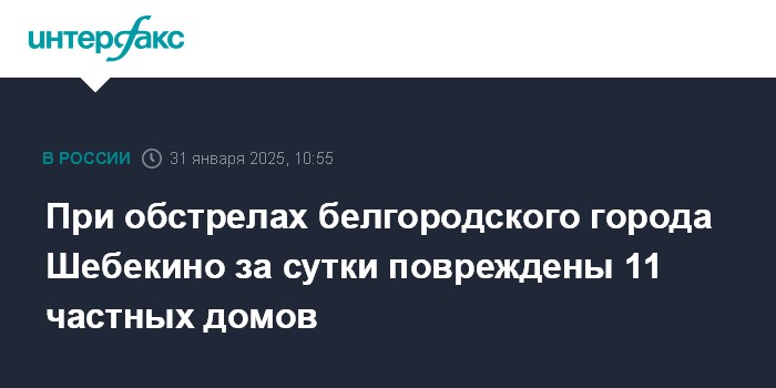 Москва. 31 января. INTERFAX.RU - Число поврежденных в результате воздушных атак ВСУ за минувшие сутки жилых домов в Шебекинском муниципальном округе Белгородской области увеличилось до 11, сообщил глава региона Вячеслав Гладков.