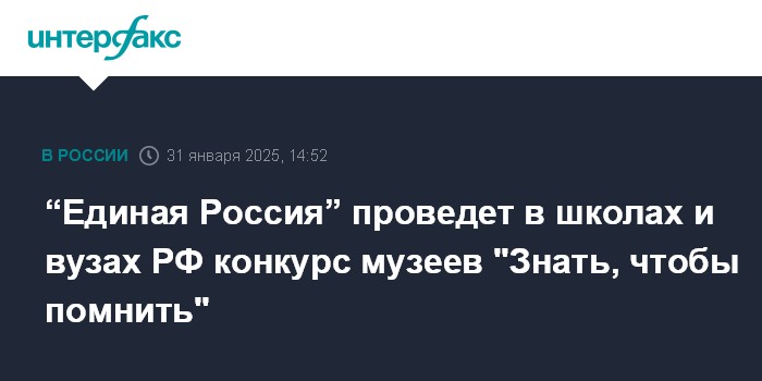 "Единая Россия" в 2025 году проведет Всероссийский конкурс музеев общеобразовательных организаций "Знать, чтобы помнить". Призовой фонд для различных категорий победителей составит от 200 до 500 тысяч рублей", - сообщил Якушев в пятницу на заседании оргкомитета партии "Наша Победа".