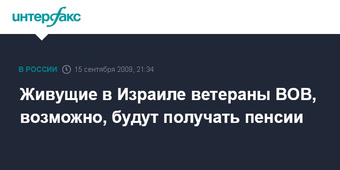 Москва. 15 сентября. INTERFAX.RU - Израильские депутаты поддержали идею принятия решения о выплате пенсий ветеранам Великой Отечественной войны, проживающим в Израиле, сообщили во вторник "Интерфаксу" во Всемирном конгрессе русскоязычного еврейства (ВКРЕ).