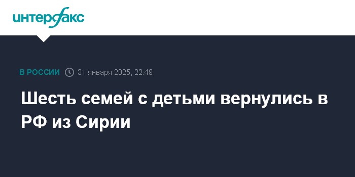 Москва. 31 января. INTERFAX.RU - Уполномоченный при президенте РФ по правам ребенка Мария Львова-Белова сообщила о возвращении в Россию из Сирии шести семей.