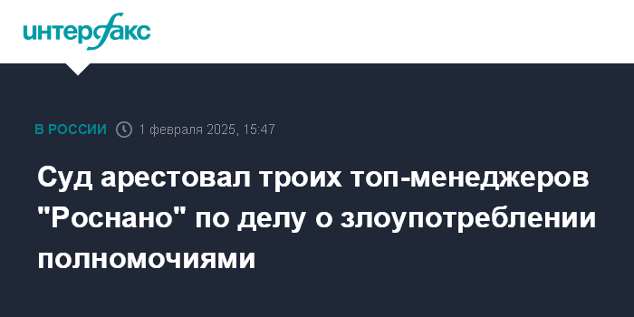 Суд арестовал троих топ-менеджеров "Роснано" по делу о злоупотреблении полномочиями