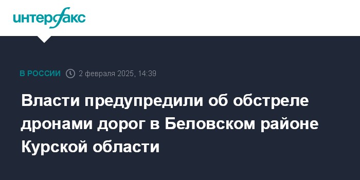 Москва. 2 февраля. INTERFAX.RU - Глава Беловского района Курской области Николай Волобуев сообщил об атаках украинских дронов на автодорогах.