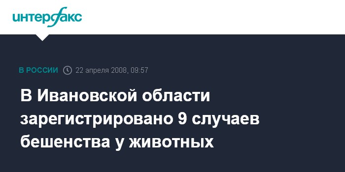 Иваново. 22 апреля. INTERFAX.RU - В Ивановской области в этом году зарегистрировано 9 случаев бешенства, сообщила "Интерфаксу" во вторник начальник отдела противоэпизоотических мероприятий Госветнадзора Татьяна Химич.