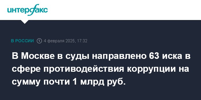 В Москве в суды направлено 63 иска в сфере противодействия коррупции на сумму почти 1 млрд руб.