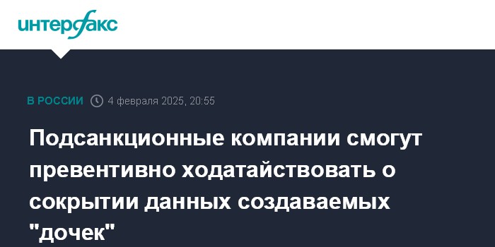 Подсанкционные компании смогут превентивно ходатайствовать о сокрытии данных создаваемых "дочек"