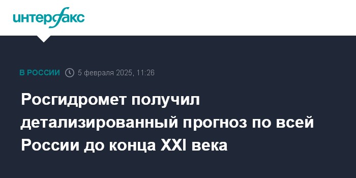 Москва. 5 февраля. INTERFAX.RU - Единая государственная система мониторинга климатически активных веществ позволила получить детализированный сценарный прогноз изменения климата для всей территории России до конца XXI века, включая детальные прогнозы по 35 российским городам с населением более полумиллиона человек.