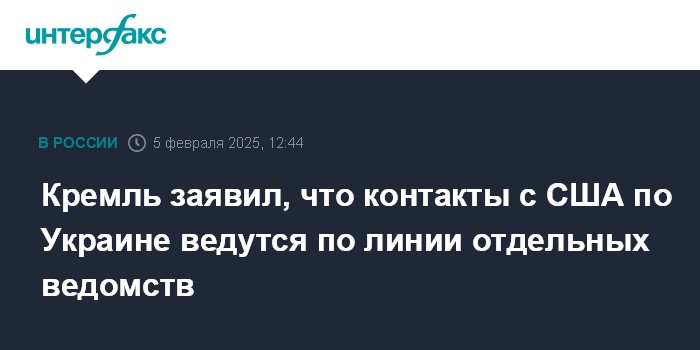 Москва. 5 февраля. INTERFAX.RU - В Кремле заявили, что контакты России и США по урегулированию на Украине ведутся по линии отдельных ведомств, и в последнее время они стали более активными.