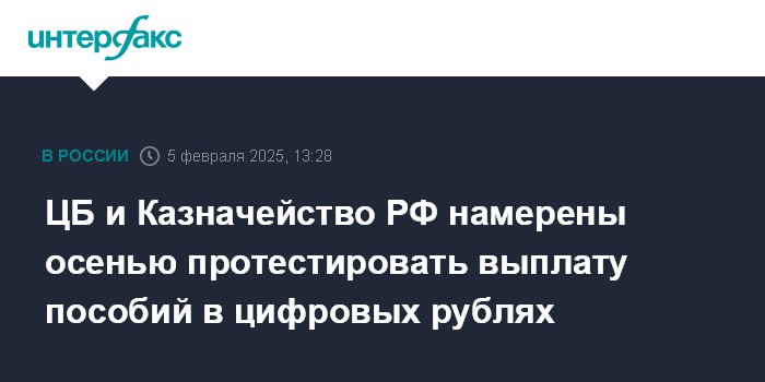 ЦБ и Казначейство РФ намерены осенью протестировать выплату пособий в цифровых рублях