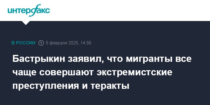 Москва. 5 февраля. INTERFAX.RU - Преступления мигрантов представляют угрозу безопасности страны, они все чаще совершают террористические и экстремистские преступления, заявил на итоговой коллегии председатель Следственного комитета России Александр Бастрыкин.