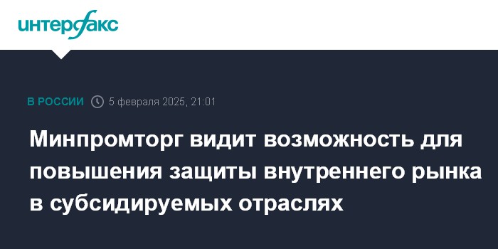 Минпромторг видит возможность для повышения защиты внутреннего рынка в субсидируемых отраслях