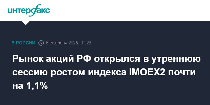 Рынок акций РФ открылся в утреннюю сессию ростом индекса IMOEX2 почти на 1,1%