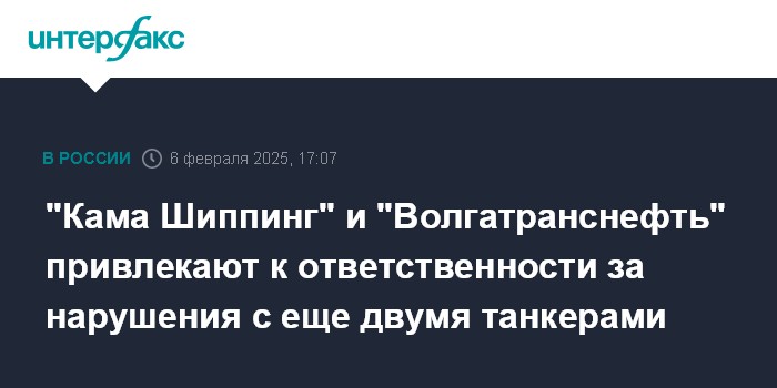 "Кама Шиппинг" и "Волгатранснефть" привлекают к ответственности за нарушения с еще двумя танкерами