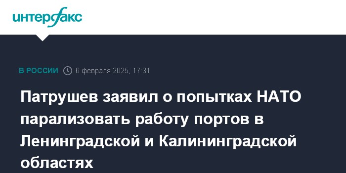 Москва. 6 февраля. INTERFAX.RU - Действия Североатлантического альянса направлены на блокировку России на Балтике с целью парализовать работу портов в Ленинградской и Калининградской областях, заявил помощник президента России, председатель Морской коллегии РФ Николай Патрушев.