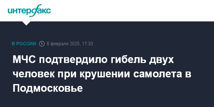 МЧС подтвердило гибель двух человек при крушении самолета в Подмосковье
