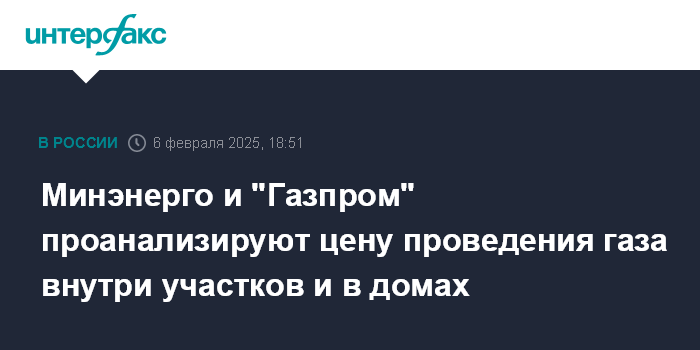 Минэнерго и "Газпром" проанализируют цену проведения газа внутри участков и в домах