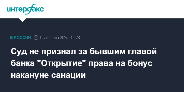 Суд не признал за бывшим главой банка "Открытие" права на бонус накануне санации