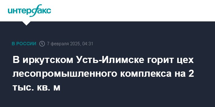 Москва. 7 февраля. INTERFAX.RU - Пожар произошел в пятницу в сортировочном цехе на промышленной площадке лесопромышленного комплекса в Усть-Илимске Иркутской области, сообщает МЧС России.