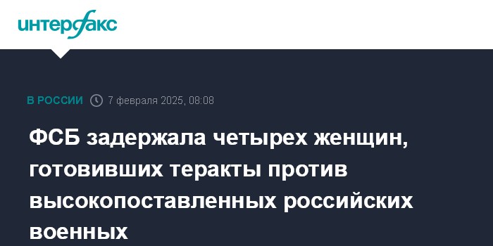 ФСБ задержала четырех женщин, готовивших теракты против высокопоставленных российских военных
