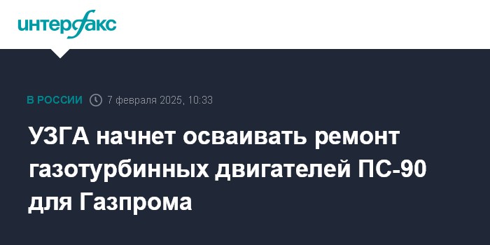 УЗГА начнет осваивать ремонт газотурбинных двигателей ПС-90 для Газпрома