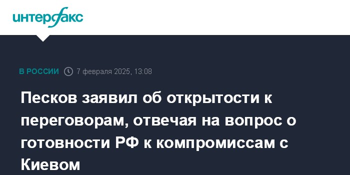Песков заявил об открытости к переговорам, отвечая на вопрос о готовности РФ к компромиссам с Киевом