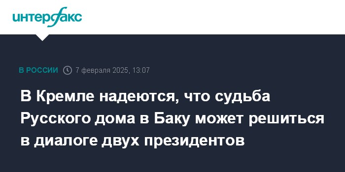 В Кремле надеются, что судьба Русского дома в Баку может решиться в диалоге двух президентов