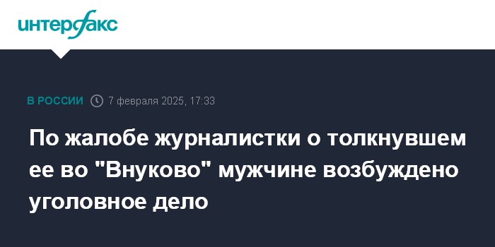 По жалобе журналистки о толкнувшем ее во "Внуково" мужчине возбуждено уголовное дело