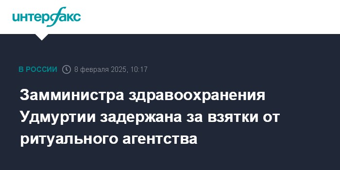 Замминистра здравоохранения Удмуртии задержана за взятки от ритуального агентства