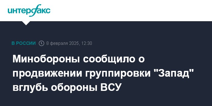 Москва. 8 февраля. INTERFAX.RU - Подразделения российской группировки войск "Запад" продвинулись вглубь обороны вооруженных сил Украины (ВСУ), группировки "Восток" и "Южная" улучшили положение и заняли более выгодные позиции, заявили в Минобороны РФ в субботу.