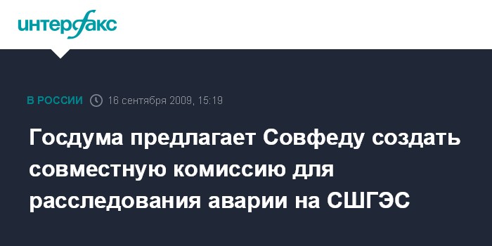 Москва. 16 сентября. INTERFAX.RU - Госдума в среду проголосовала за проведение парламентского расследования аварии на Саяно-Шушенской ГЭС и предложила Совету Федерации создать для этого совместную комиссию.