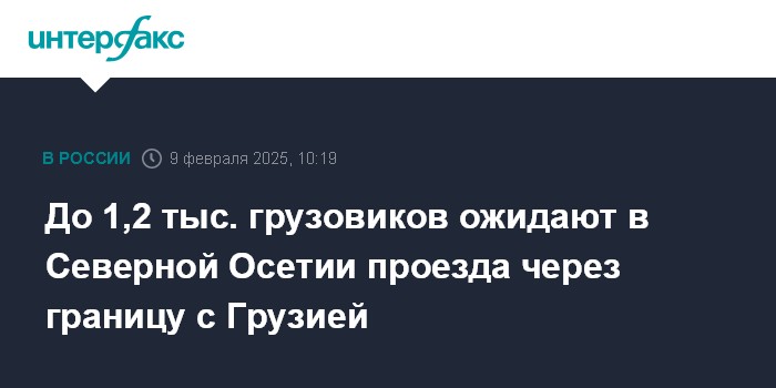 Москва. 9 февраля. INTERFAX.RU - Около 1,2 тыс. грузовиков стоят в электронной очереди на проезд через российско-грузинскую границу в пункте пропуска "Верхний Ларс" в Северной Осетии, сообщается на сайте Центра организации дорожного движения республики в воскресенье.