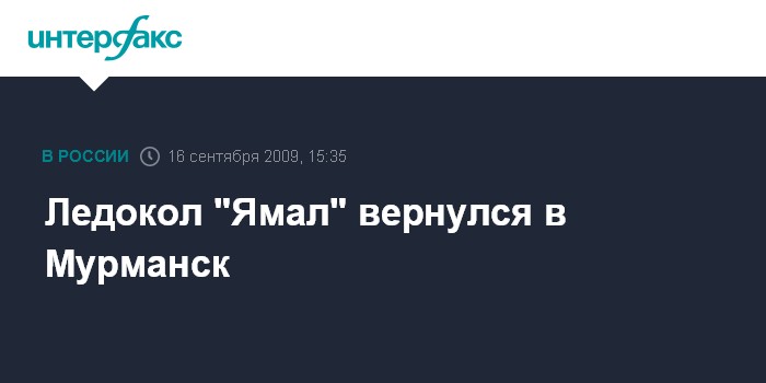 Мурманск. 16 сентября. INTERFAX.RU - Атомный ледокол "Ямал" завершил экспедицию "Арктика-2009" и в среду днем ошвартовался в порту города Мурманск.