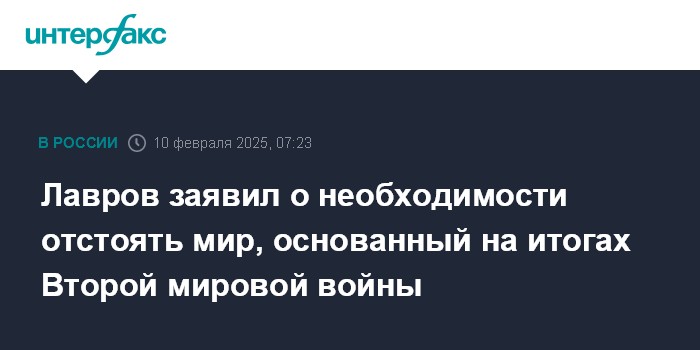 Лавров заявил о необходимости отстоять мир, основанный на итогах Второй мировой войны