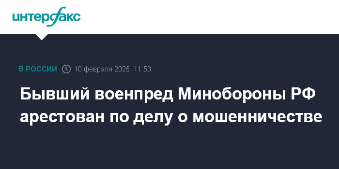 Бывший военпред Минобороны РФ арестован по делу о мошенничестве