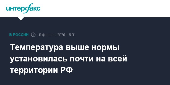Москва. 10 февраля. INTERFAX.RU - Почти на всей территории РФ в ближайшие дни температура будет выше нормы, исключением станут регионы центра и юга европейской части страны, сообщил "Интерфаксу" научный руководитель Гидрометцентра России Роман Вильфанд.