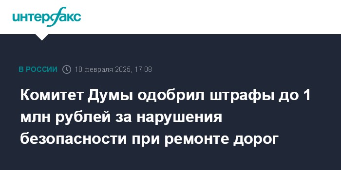 Комитет Думы одобрил штрафы до 1 млн рублей за нарушения безопасности при ремонте дорог
