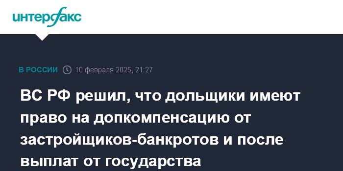 ВС РФ решил, что дольщики имеют право на допкомпенсацию от застройщиков-банкротов и после выплат от государства
