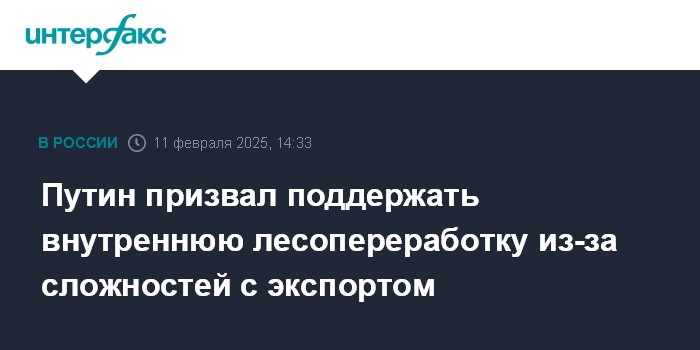 Москва. 11 февраля. INTERFAX.RU - Президент Владимир Путин высказался за поддержку российских лесопереработчиков, испытывающих сложности с поставками своей продукции на экспорт.