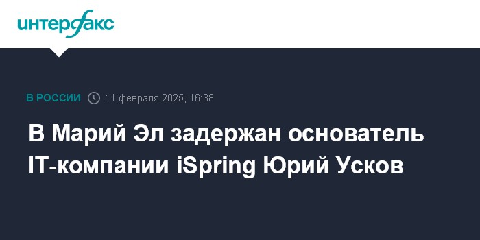 Москва. 11 февраля. INTERFAX.RU - В Марий Эл задержан основатель компании-разработчика программных продуктов для корпоративного обучения iSpring Юрий Усков, сообщил вице-спикер Госдумы Владислав Даванков.