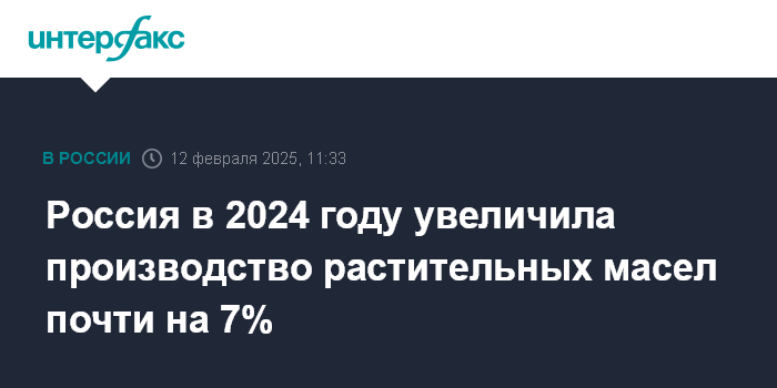 Россия в 2024 году увеличила производство растительных масел почти на 7%
