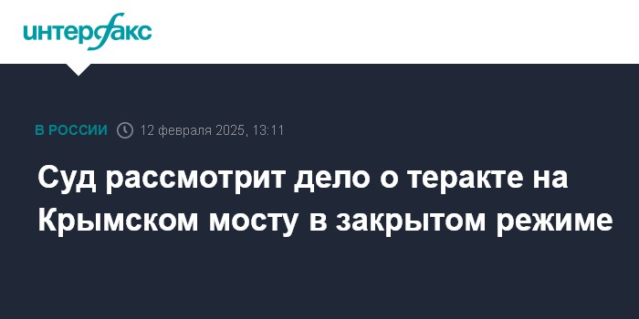 Москва. 12 февраля. INTERFAX.RU - Южный окружной военный суд в Ростове-на-Дону рассмотрит в закрытом режиме дело о теракте на Крымском мосту, который был совершен в октябре 2022 года.
