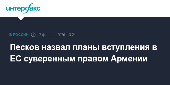 Москва. 12 февраля. INTERFAX.RU - Желание вступить в Евросоюз - это суверенное право Армении, но пока что народ этой страны продолжает получать дивиденды от членства в Евразийском экономическом союзе (ЕАЭС), заявил пресс-секретарь президента РФ Дмитрий Песков.