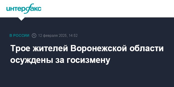 Москва. 12 февраля. INTERFAX.RU - Воронежский областной суд приговорил к длительным срокам заключения трех жителей региона, признав их виновными в государственной измене, сообщает областная прокуратура в среду.