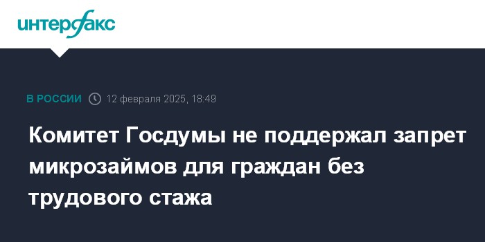 Москва. 12 февраля. INTERFAX.RU - Комитет Госдумы по финансовому рынку не поддержал законопроект, предусматривающий запрет на выдачу микрозаймов гражданам без трудового стажа или с непрерывным стажем менее 12 месяцев, сославшись на нарушение конституционных прав и дискриминацию по признаку доходов.