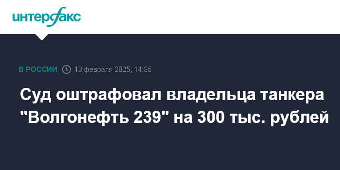 Суд оштрафовал владельца танкера "Волгонефть 239" на 300 тыс. рублей