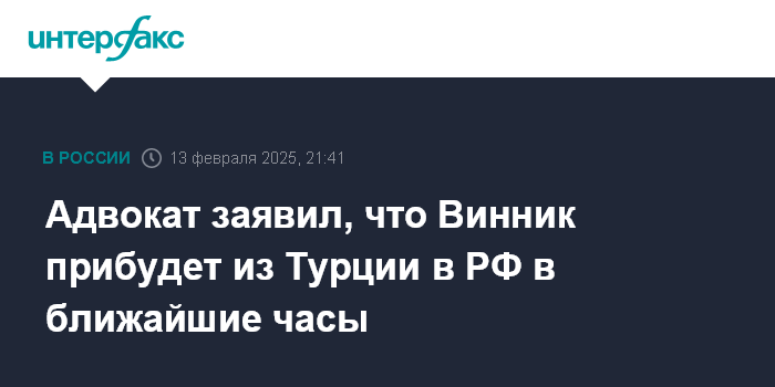 Адвокат заявил, что Винник прибудет из Турции в РФ в ближайшие часы