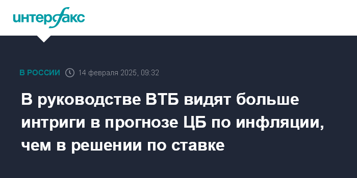 В руководстве ВТБ видят больше интриги в прогнозе ЦБ по инфляции, чем в решении по ставке