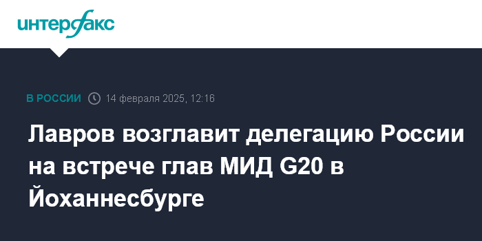 Лавров возглавит делегацию России на встрече глав МИД G20 в Йоханнесбурге