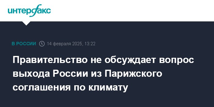 Москва. 14 февраля. INTERFAX.RU - Вопрос выхода России из Парижского соглашения не рассматривается в правительстве, сообщил журналистам глава Минэкономразвития Максим Решетников.