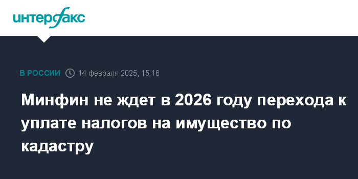 Минфин не ждет в 2026 году перехода к уплате налогов на имущество по кадастру