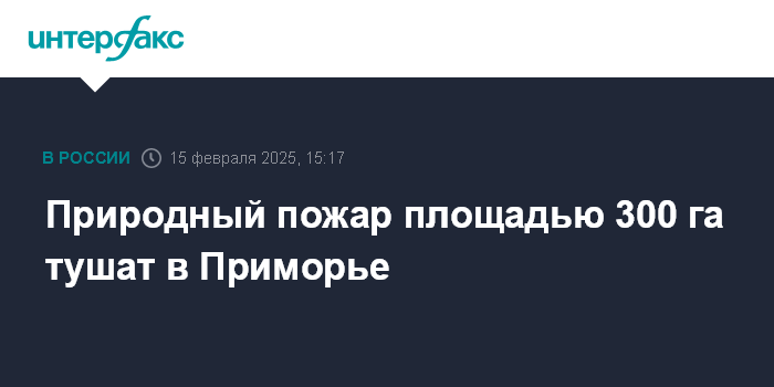 "Утром 15 февраля на территории Уссурийского сельского участкового лесничества зафиксирован пожар, площадь которого составляет порядка 300 га", - говорится в сообщении.